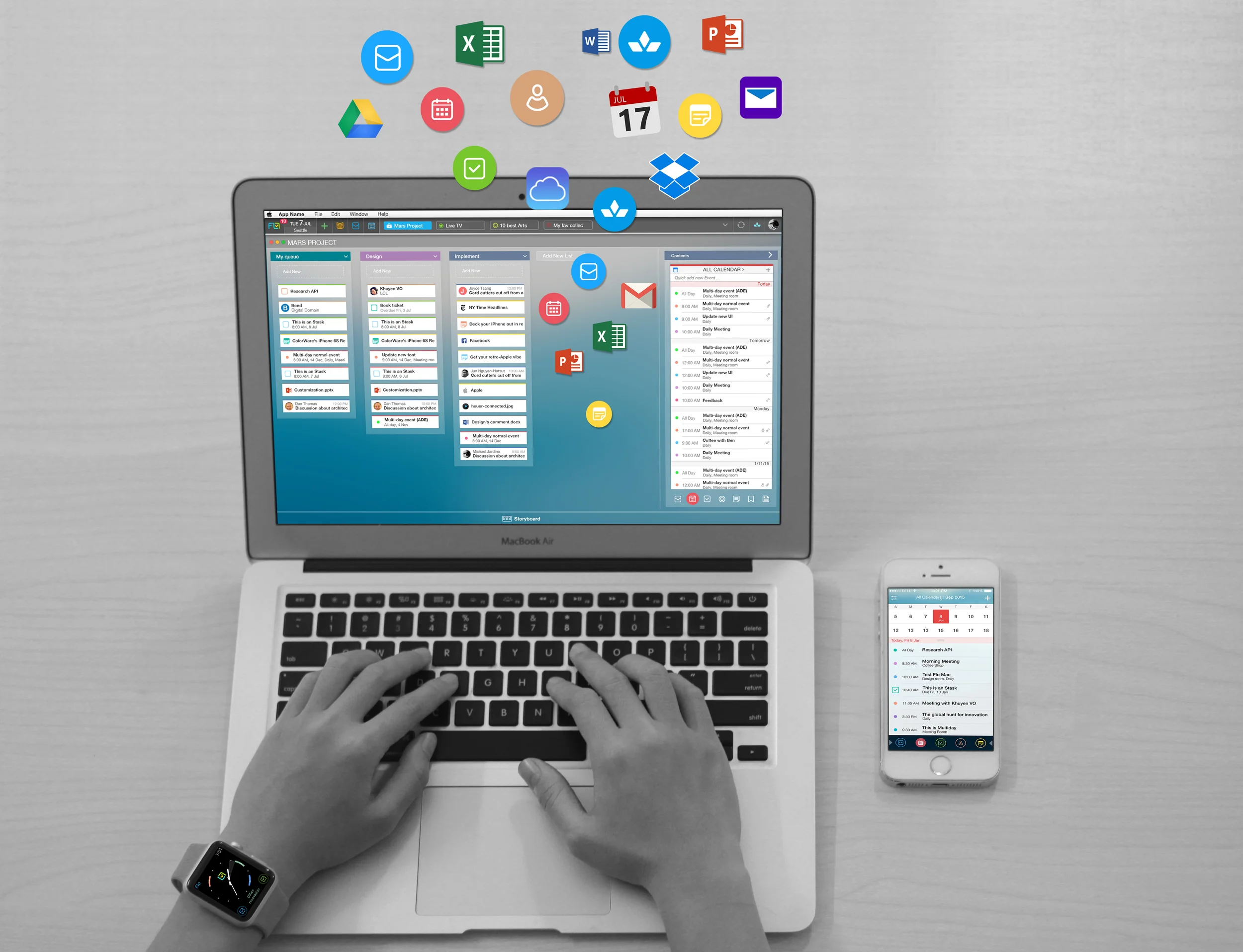 Flo's built-in organizer takes your emails, calendars, lists, and contacts - and connects them to each other on all your devices. So you don't have to click all over the place.